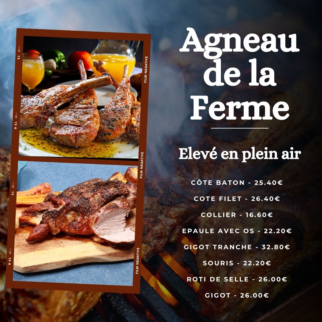 bœuf, agneau, taureau, porc, canard, mais aussi fromages fermiers, le tout découpé avec soin par mon boucher local et vendu au détail.