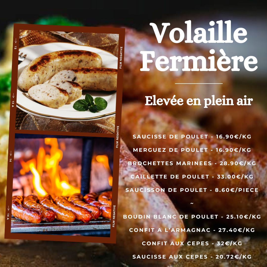 Découvrez ma gamme de produits transformés à base de poulet fermier élevé en plein air, préparés maison avec soin et savoir-faire :
